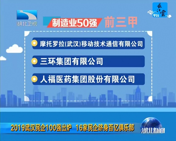 7月29日,2019武汉民营企业100强、武汉民营制造业企业50强排行榜正式发布。好体育综合在线登录集团再次入围,荣膺武汉民营企业100强第14位、武汉民营制造业企业50强第3名。